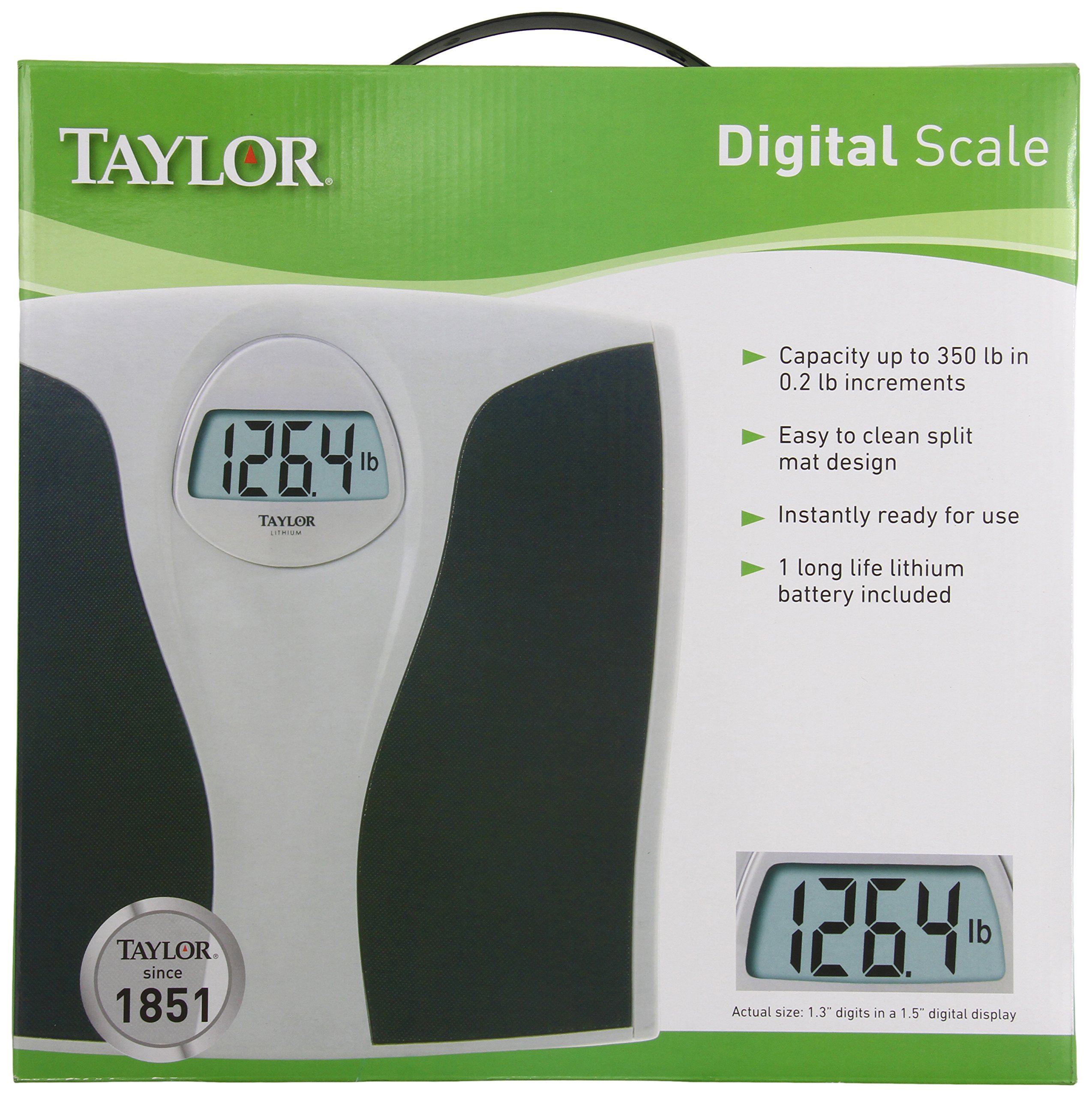 This manual provides instructions for the proper setup, operation, and maintenance of your Taylor 7335 Digital Scale. This electronic scale is designed for accurate body weight measurement, combining a silver platform with a black textured mat for a secure, non-slip surface. It features a large, easy-to-read LCD display and is powered by a long-life lithium battery.