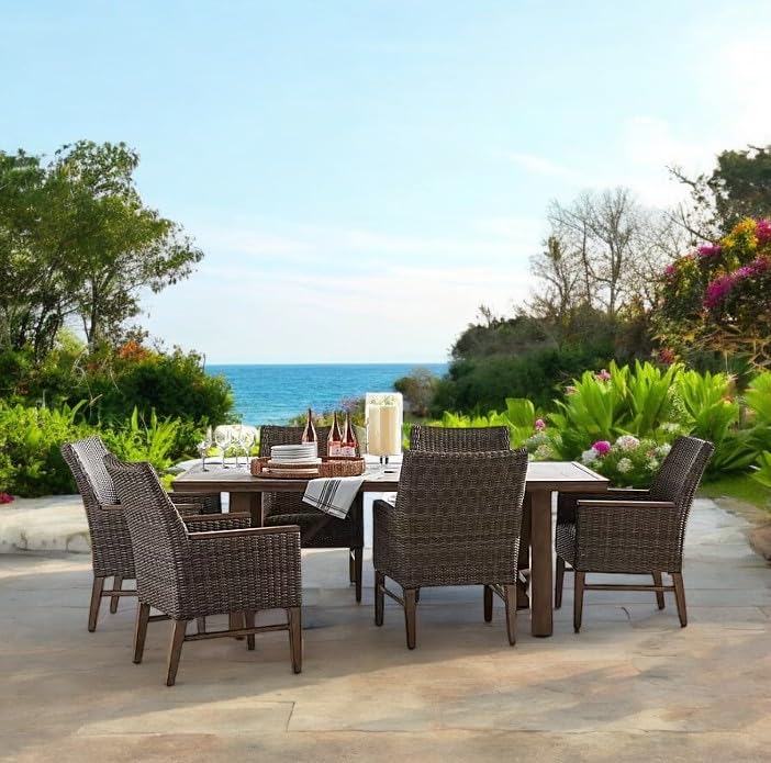 Этот обеденный комплект из 7 предметов предназначен для комфортного обеда и приема гостей на открытом воздухе. Просторный прямоугольный стол обеспечивает ampВ комплекте достаточно места для приема пищи и встреч, а шесть стульев с высокими спинками и мягкими подушками обеспечат комфортное сидение. Устойчивая к погодным условиям конструкция, включая плетеную мебель, устойчивую к ультрафиолетовому излучению, и водоотталкивающие подушки, гарантирует долговечность и возможность длительного использования на открытом воздухе.